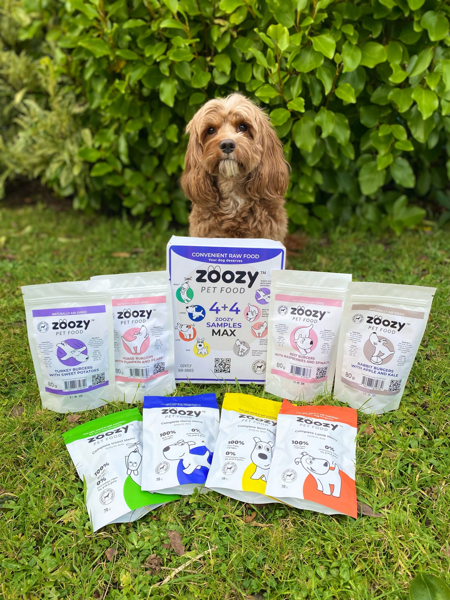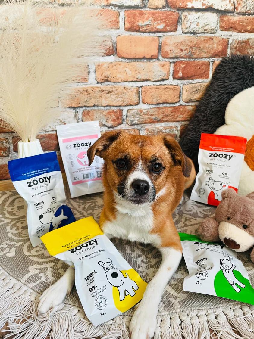 (@chrupek_jamnik) Instagram“The air-dried insect menu from @zoozy_pet_food consists of 60% black soldier fly larvae 🦋, mixed with fresh vegetables and delicious fruits, including crispy sweet potatoes 🥔, nutritious carrots 🥕, young peas 🌱, fresh apples 🍏🍎, nutritious broccoli 🌳, and berries 🍇. These rich ingredients create tasty dry food pellets, which Chrupeczek loves ❤️🔥.”