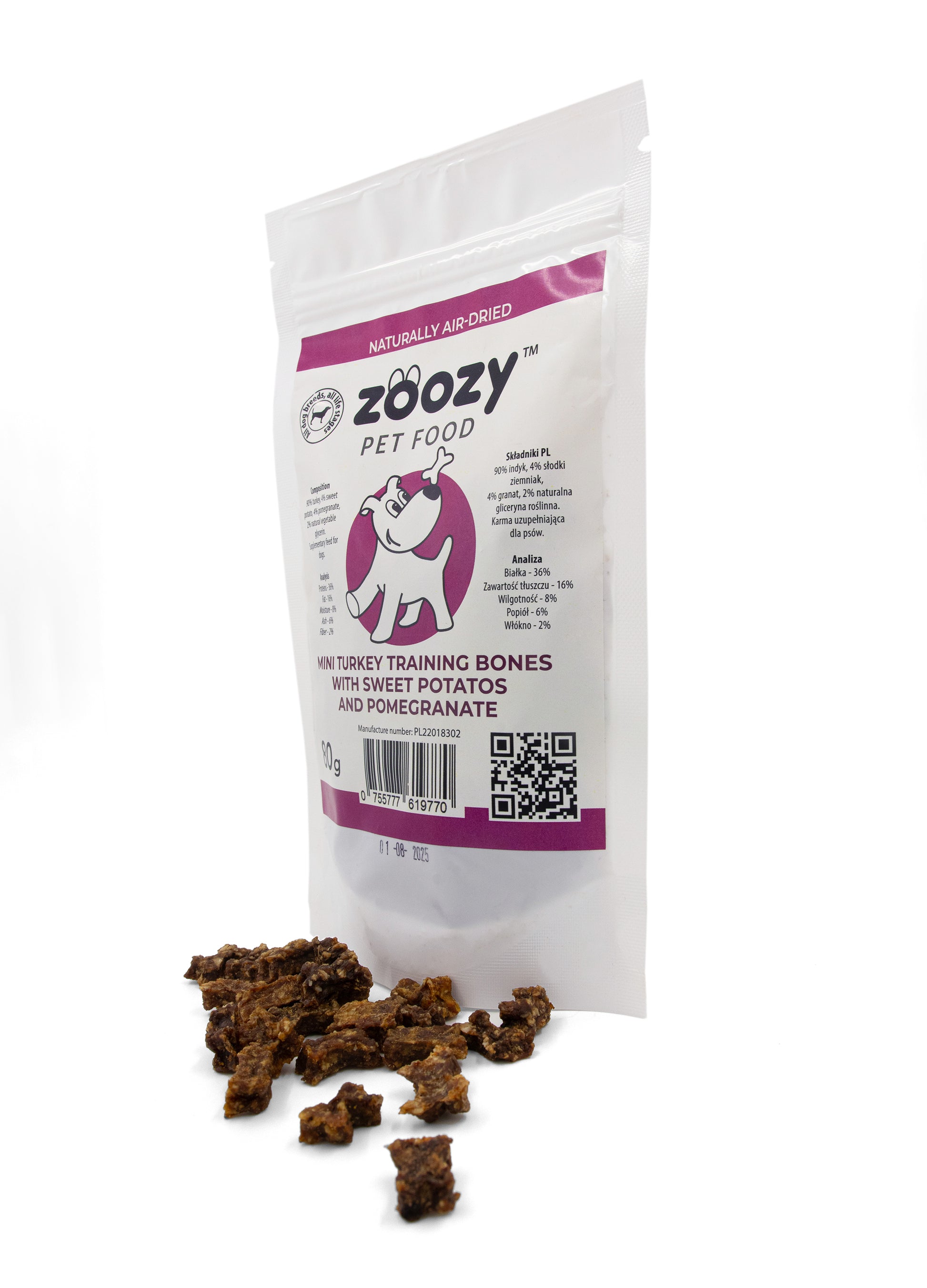 Mini kości treningowe z indyka ze słodkimi ziemniakami i granatem