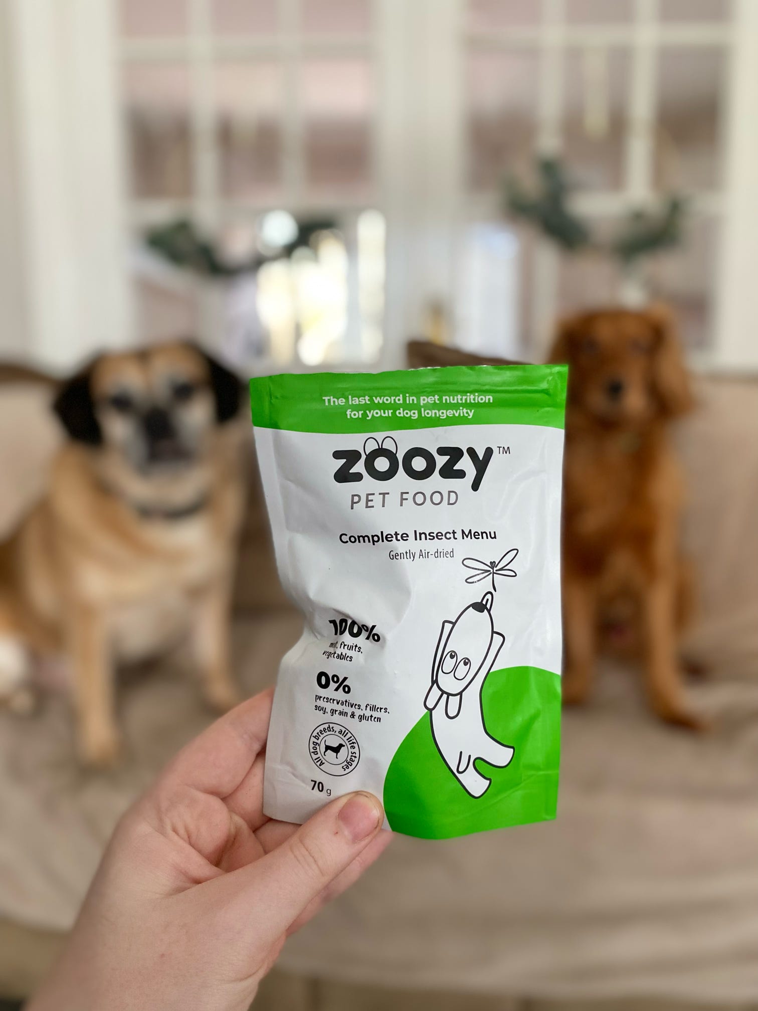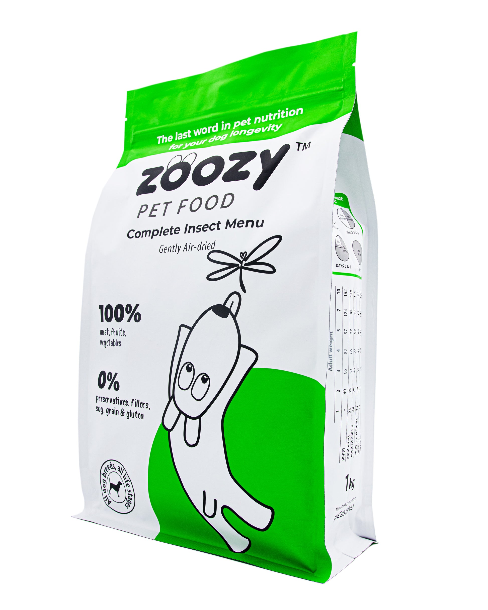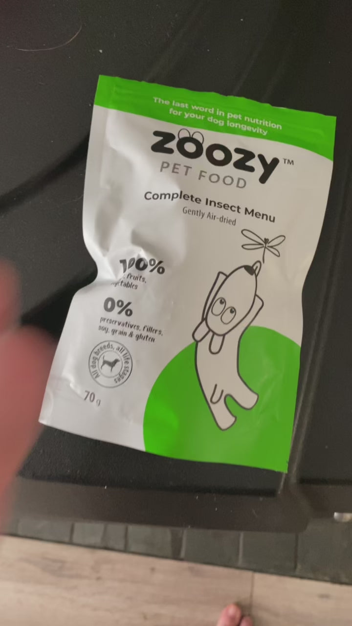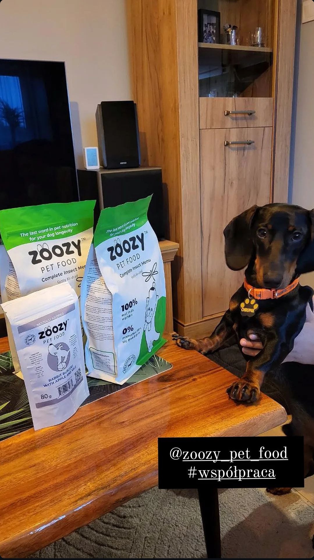 (@chrupek_jamnik) Instagram“The air-dried insect menu from @zoozy_pet_food consists of 60% black soldier fly larvae 🦋, mixed with fresh vegetables and delicious fruits, including crispy sweet potatoes 🥔, nutritious carrots 🥕, young peas 🌱, fresh apples 🍏🍎, nutritious broccoli 🌳, and berries 🍇. These rich ingredients create tasty dry food pellets, which Chrupeczek loves ❤️🔥.”