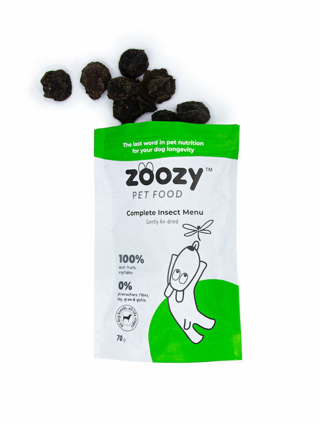 (@chrupek_jamnik) Instagram“The air-dried insect menu from @zoozy_pet_food consists of 60% black soldier fly larvae 🦋, mixed with fresh vegetables and delicious fruits, including crispy sweet potatoes 🥔, nutritious carrots 🥕, young peas 🌱, fresh apples 🍏🍎, nutritious broccoli 🌳, and berries 🍇. These rich ingredients create tasty dry food pellets, which Chrupeczek loves ❤️🔥.”